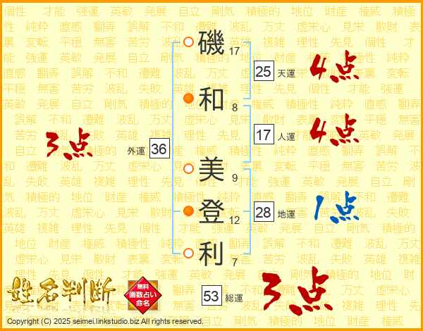 磯和美登利さんの天運は25画の4点!