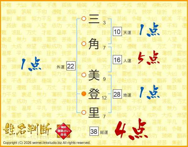 三角美登里さんの総運は38画の4点!