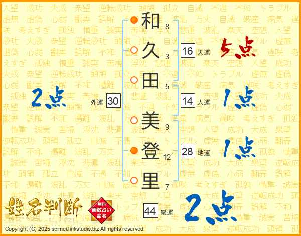 和久田美登里さんの総運は44画の2点!