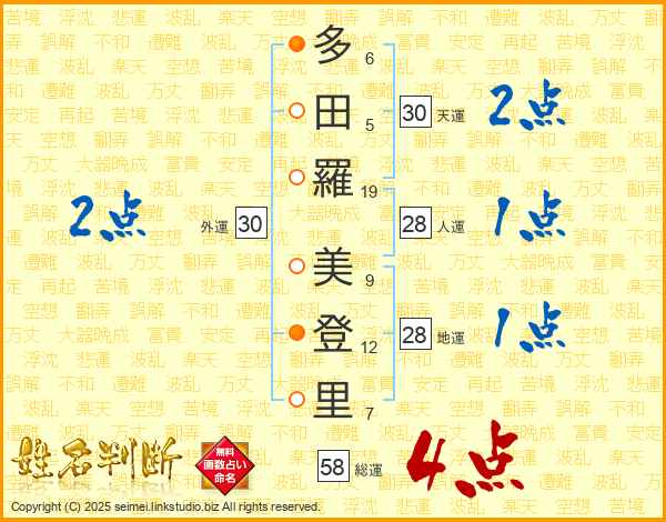 多田羅美登里さんの総運は58画の4点!