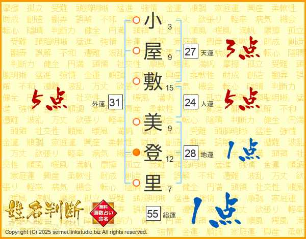 小屋敷美登里さんの総運は55画の1点!