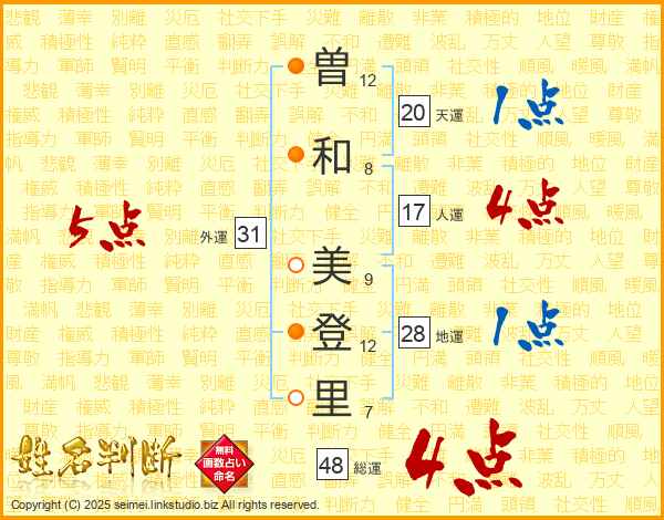 曽和美登里さんの総運は48画の4点!