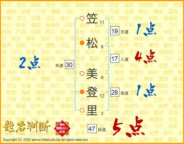 笠松美登里さんの総運は47画の5点!