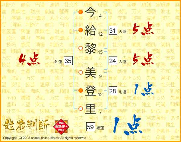 今給黎美登里さんの天運は31画の5点!