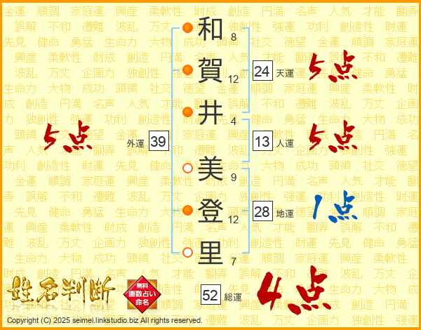 和(8画)賀(12画)井(4画) 美(9画)登(12画)里(7画)