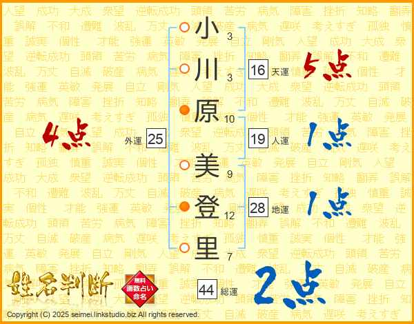 小川原美登里さんの総運は44画の2点!