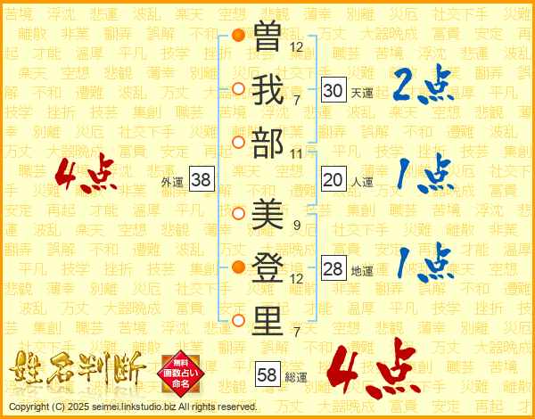 曽我部美登里さんの天運は30画の2点!