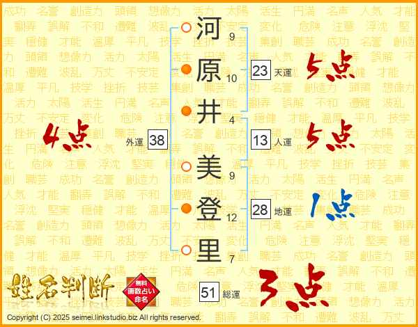 河原井美登里さんの外運は38画の4点!