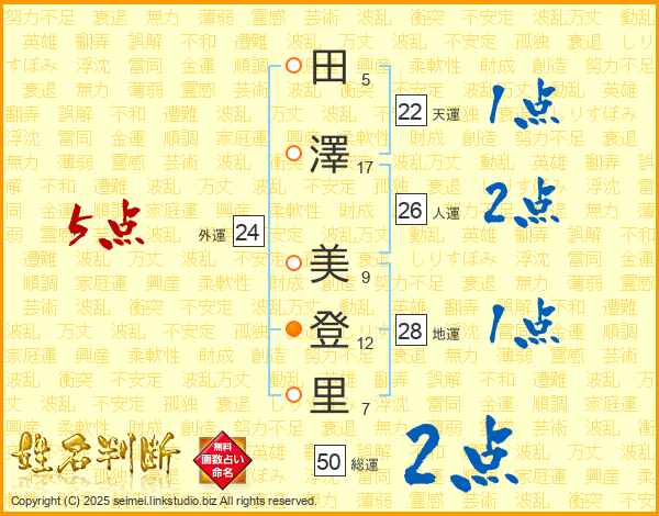 田澤美登里さんの外運は24画の5点!