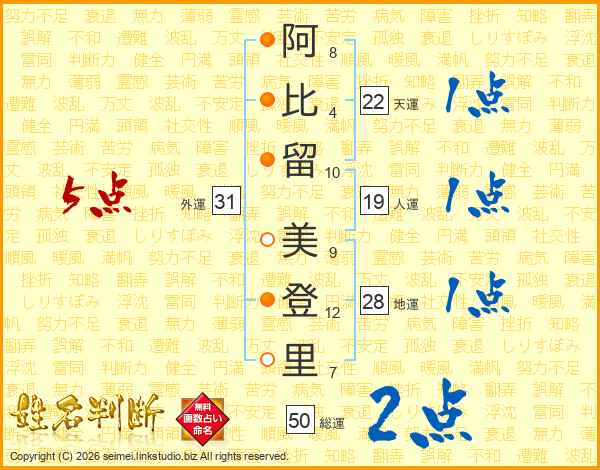阿比留美登里さんの外運は31画の5点!