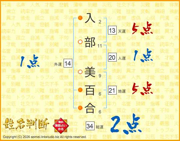 入(2画)部(11画) 美(9画)百(6画)合(6画)