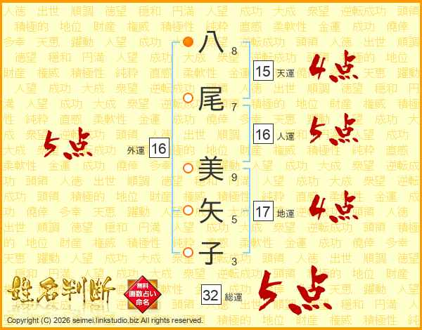 八尾美矢子さんの外運は16画の5点!