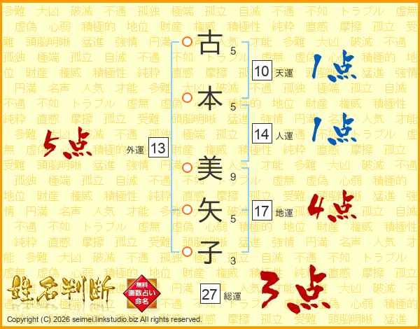 古本美矢子さんの外運は13画の5点!