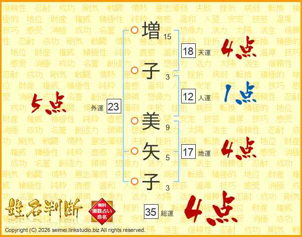 増(15画)子(3画) 美(9画)矢(5画)子(3画)