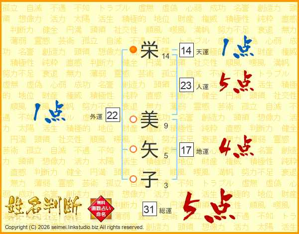 栄美矢子さんの総運は31画の5点!