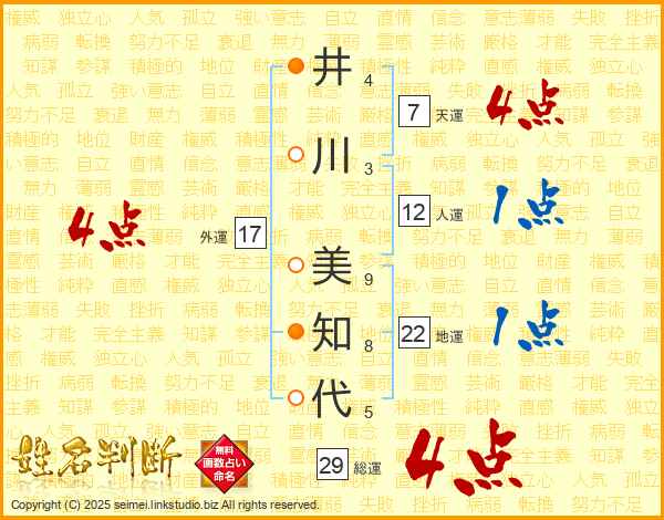 井川美知代さんの外運は17画の4点!