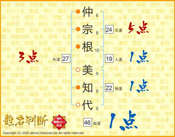 仲宗根美知代さんの総運は46画の1点!