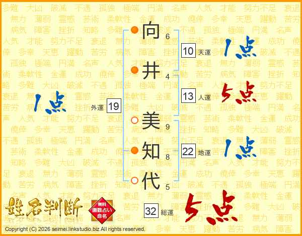 向井美知代さんの総運は32画の5点!