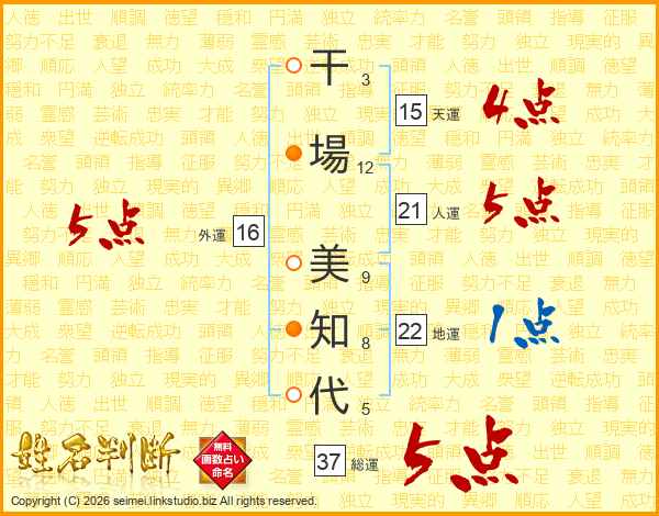 干場美知代さんの総運は37画の5点!