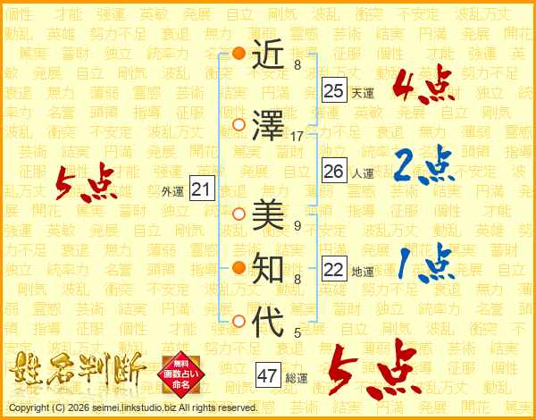 近澤美知代さんの総運は47画の5点!