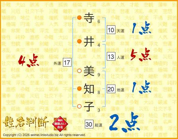 寺(6画)井(4画) 美(9画)知(8画)子(3画)