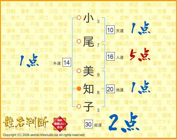 小尾美知子さんの地運は20画の1点!