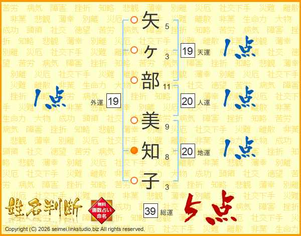 矢ヶ部美知子さんの総運は39画の5点!