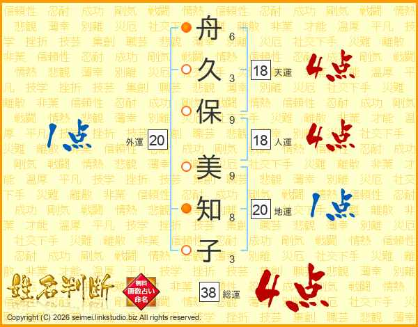 舟久保美知子さんの総運は38画の4点!