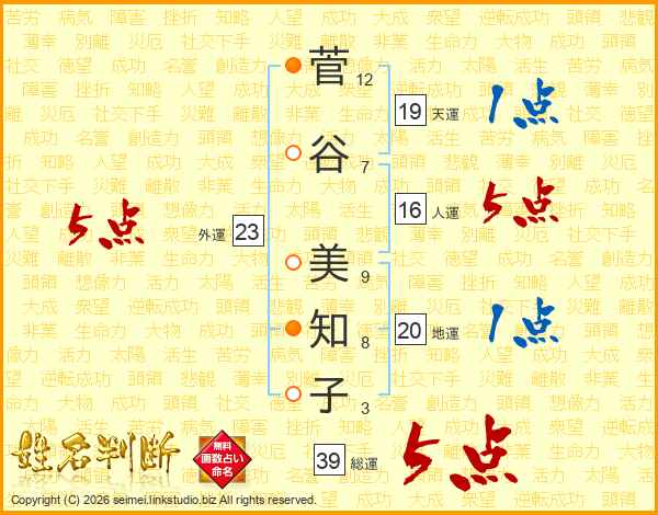 菅谷美知子さんの総運は39画の5点!