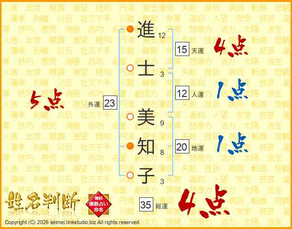 進士美知子さんの総運は35画の4点!