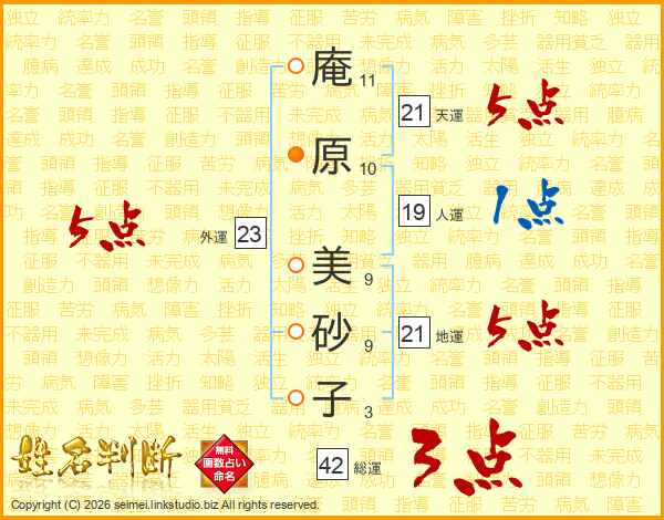 庵原美砂子さんの天運は21画の5点!