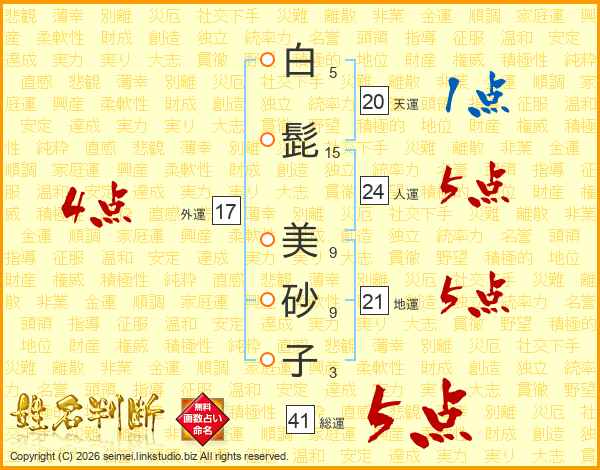 白髭美砂子さんの総運は41画の5点!