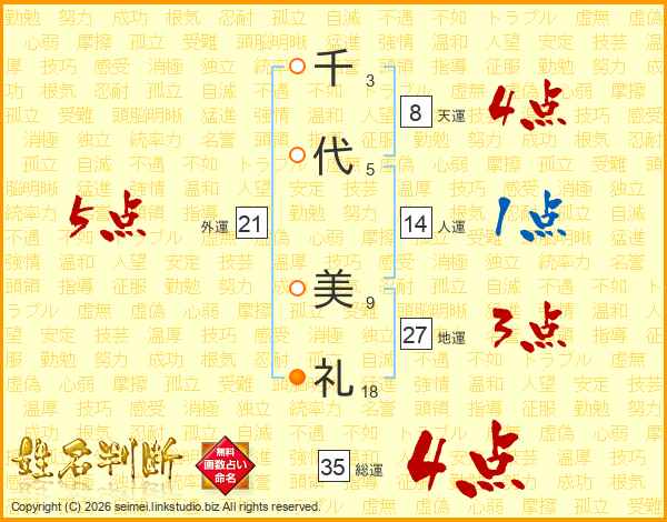 千代美礼さんの総運は35画の4点!
