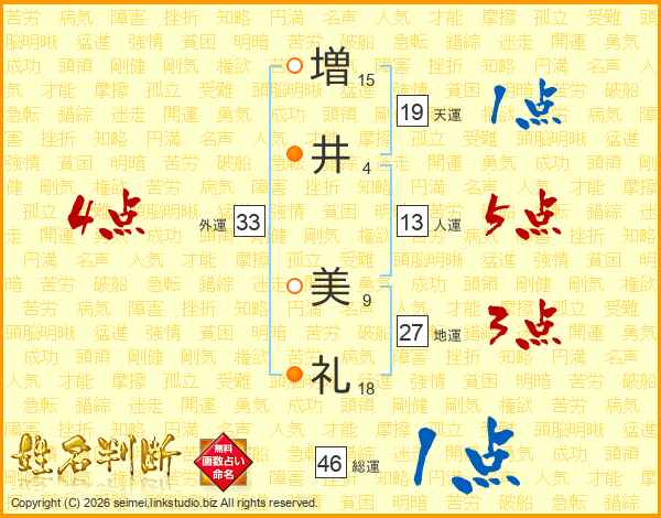 増(15画)井(4画) 美(9画)礼(18画)
