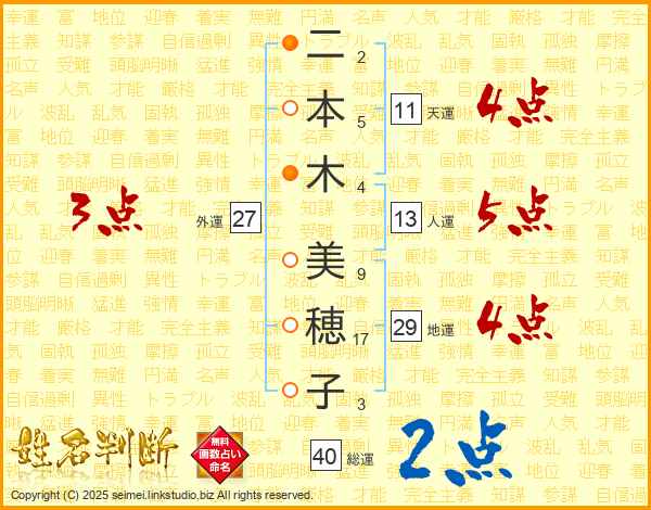 二本木美穂子さんの総運は40画の2点!