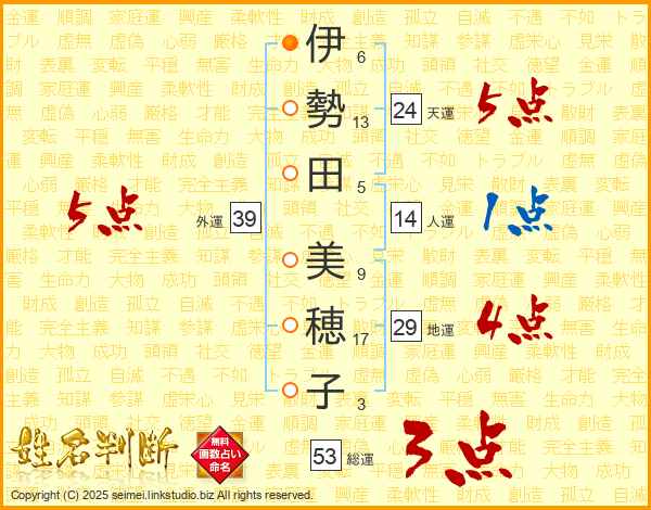 伊勢田美穂子さんの外運は39画の5点!