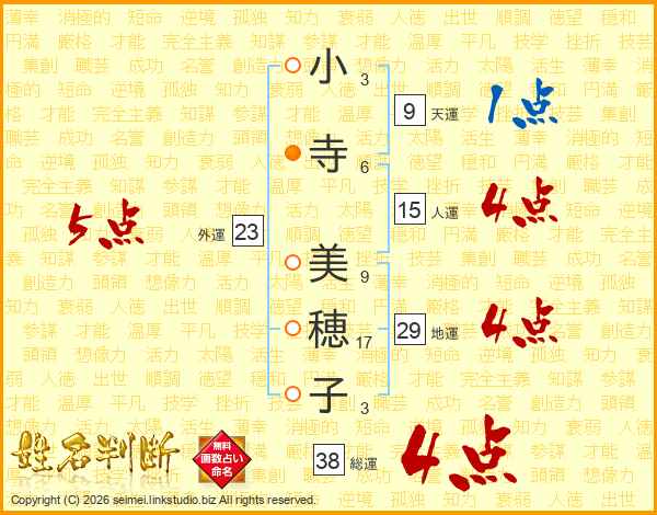 小(3画)寺(6画) 美(9画)穂(17画)子(3画)