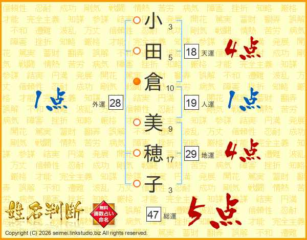 小田倉美穂子さんの総運は47画の5点!