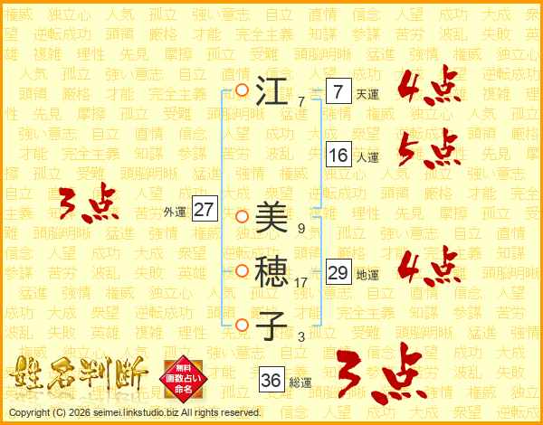 江(7画) 美(9画)穂(17画)子(3画)