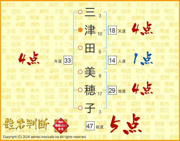 三津田美穂子さんの総運は47画の5点!