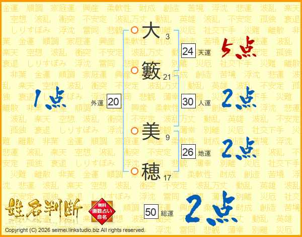 大籔美穂さんの地運は26画の2点!