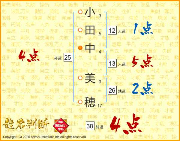 小田中美穂さんの総運は38画の4点!