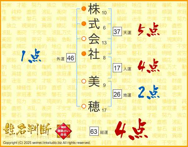 株(10画)式(6画)会(13画)社(8画) 美(9画)穂(17画)
