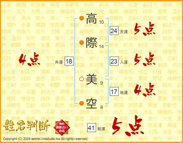 高際美空さんの総運は41画の5点!
