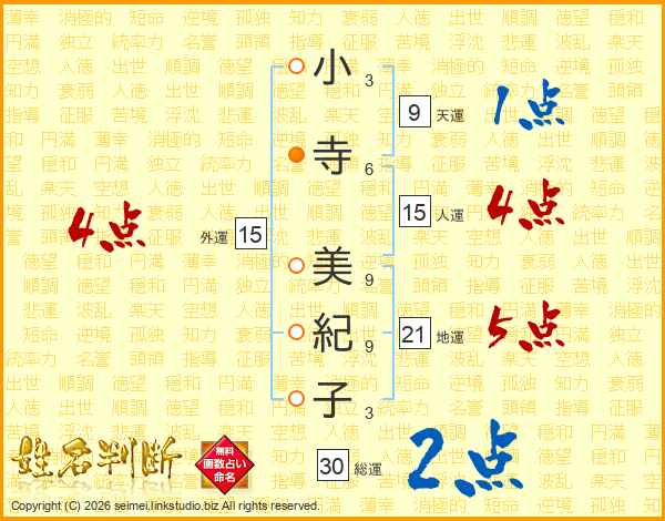 小寺美紀子さんの総運は30画の2点!