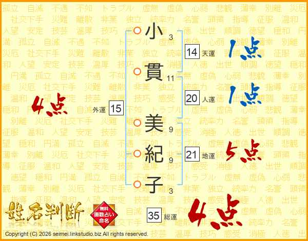 小貫美紀子さんの総運は35画の4点!