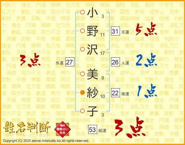 小野沢美紗子さんの天運は31画の5点!