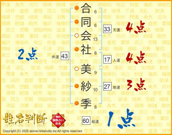 合同会社美紗季さんの人運は17画の4点!