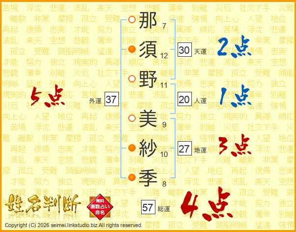 那須野美紗季さんの外運は37画の5点!