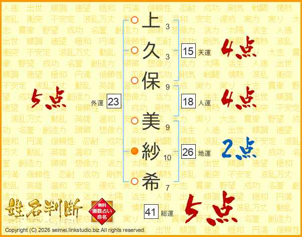 上久保美紗希さんの総運は41画の5点!